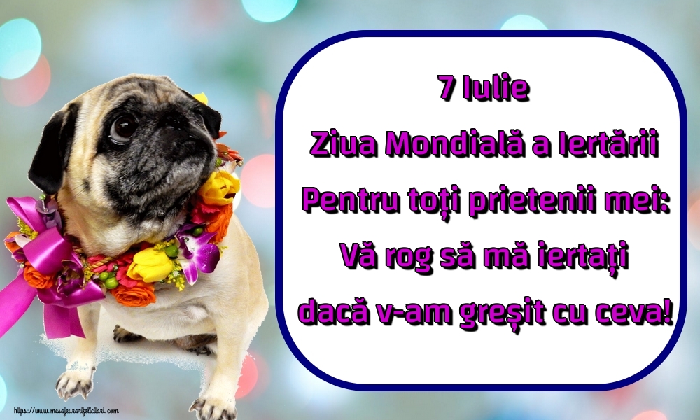 Descarca felicitarea - Felicitari de Ziua Mondială a Iertării - 7 Iulie Ziua Mondială a Iertării Pentru toți prietenii mei: Vă rog să mă iertați dacă v-am greșit cu ceva! - mesajeurarifelicitari.com