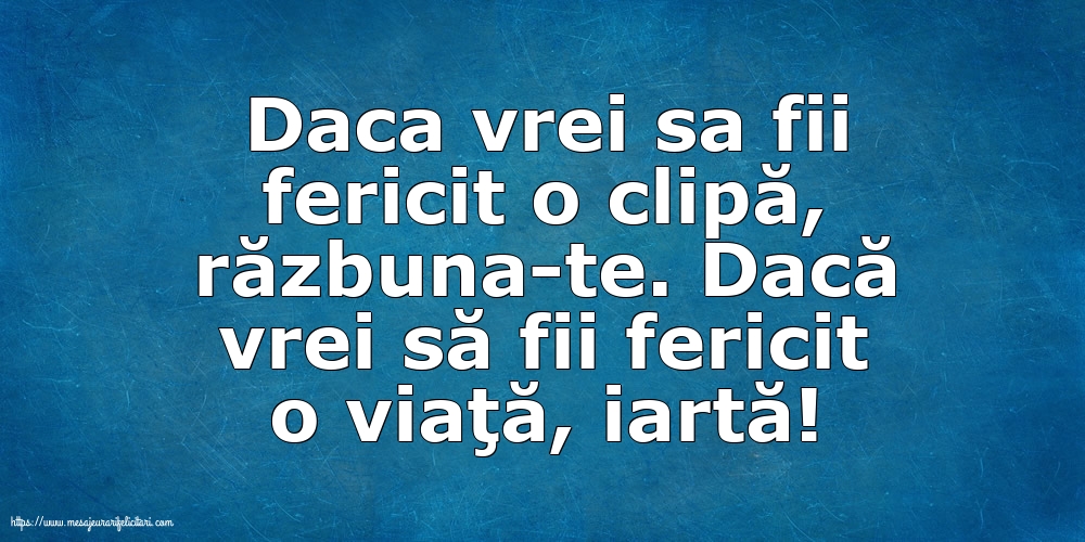 Daca vrei sa fii fericit o clipă, răzbuna-te. Dacă vrei să fii fericit o viaţă, iartă!