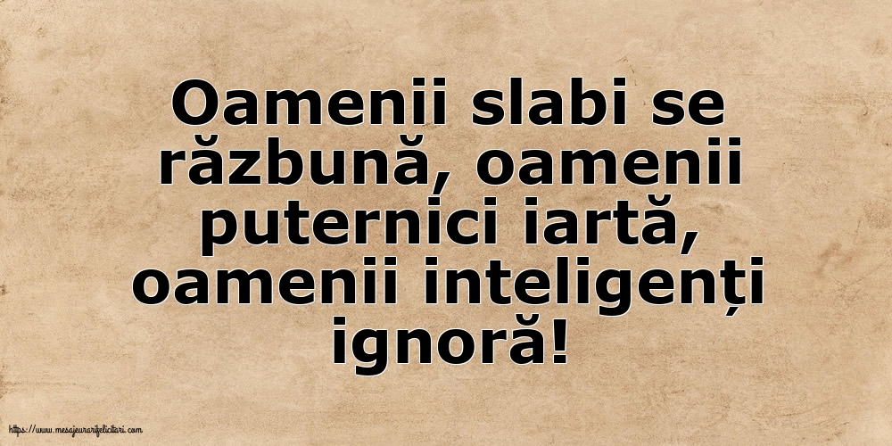 Oamenii slabi se răzbună, oamenii puternici iartă, oamenii inteligenți ignoră!