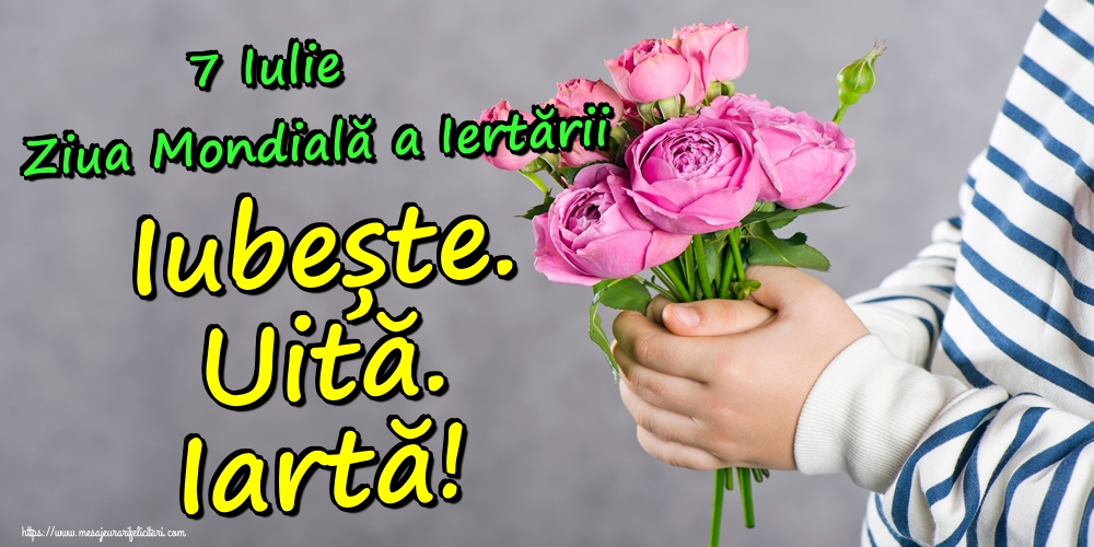 7 Iulie Ziua Mondială a Iertării Iubește. Uită. Iartă! Felicitari si imagini de Ziua Mondială a Iertării - 7 Iulie.
