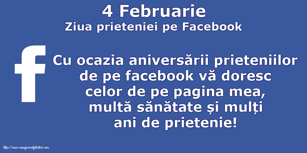 Cu ocazia aniversării prieteniilor de pe facebook vă doresc celor de pe pagina mea, multă sănătate și mulți ani de prietenie!