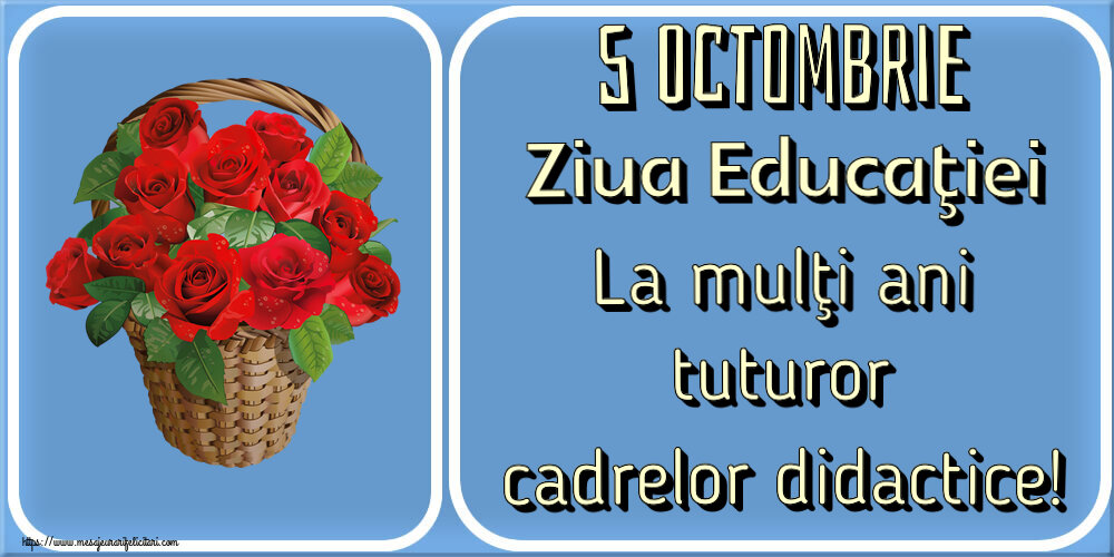 5 Octombrie Ziua Educaţiei La mulţi ani tuturor cadrelor didactice! ~ trandafiri roșii în coș