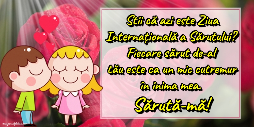 Ziua Internaţională a Sărutului (International Kissing Day) este celebrată anual pe 6 iulie, iar ideea din spatele acestei sărbători este aceea ca oamenii să redescopere plăcerea atingerii buzelor. Sărutul reprezintă ceva cu totul special, acesta fiind cea mai răspândită modalitate de manifestare a sentimentelor de iubire și afecțiune.