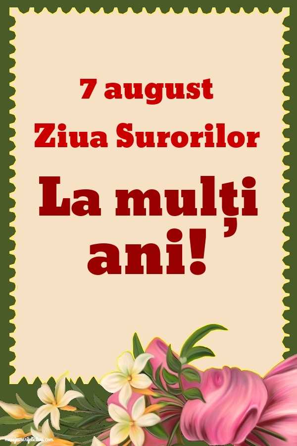 7 august Ziua Internațională a Surorilor La mulți ani, sora mea!