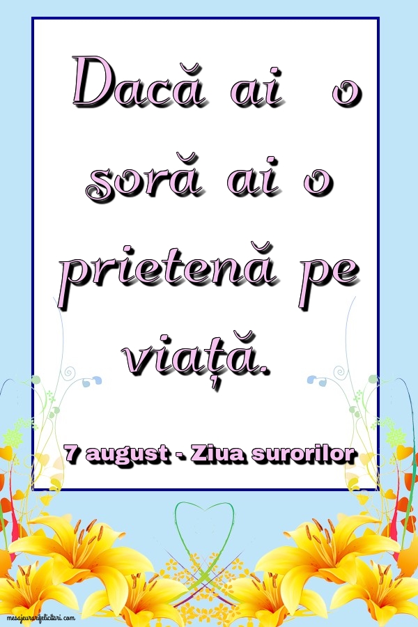 7 august Ziua Surorilor Daca ai o sora ai o prietenă pe viata!