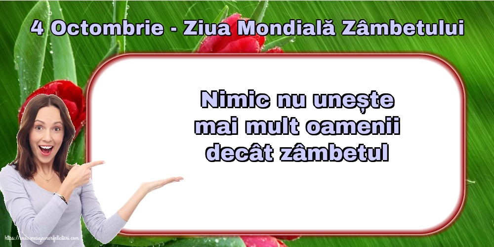 Felicitarea Anterioara Felicitarea Urmatoare Ziua Zâmbetului (95) Felicitari cu mesaje