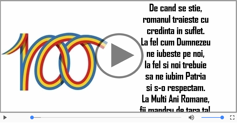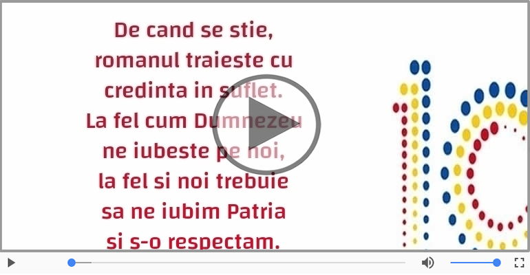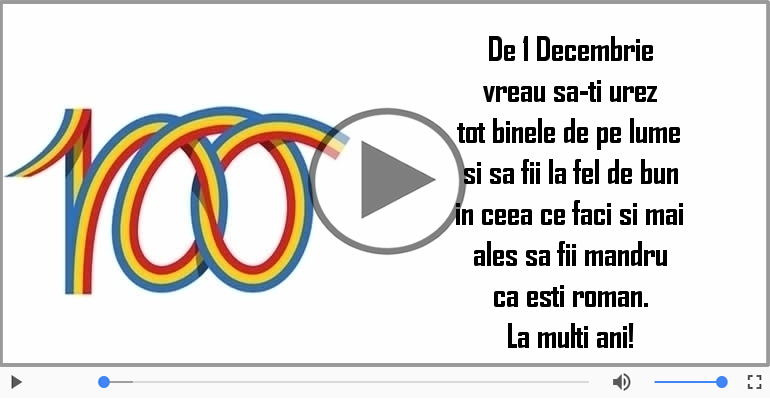 Descopera colectia noastra de felicitari muzicale de 1 Decembrie, felicitari muzicale de 1 Decembrie gratuite, felicitari muzicale de 1 Decembrie pentru facebook, felicitari muzicale si animate de 1 Decembrie pe youtube, felicitari muzicale de Ziua națională a României