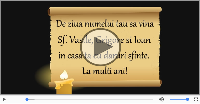 Felicitari muzicale de Sfintii Vasile, Grigore si Ioan. Trimite acum o felicitare muzicala si animata de Sfintii Vasile, Grigore si Ioan pentru toti cei care isi sarbatoresc ziua numelui!