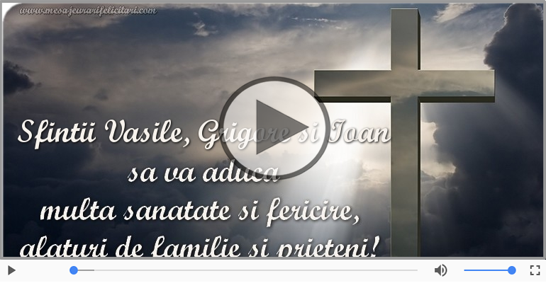 Descopera colectia noastra de felicitari muzicale de Sfintii Vasile, Grigore si Ioan, felicitari muzicale de Sfintii Vasile, Grigore si Ioan gratuite, felicitari muzicale de Sfintii Vasile, Grigore si Ioan pentru facebook, felicitari muzicale si animate de Sfintii Vasile, Grigore si Ioan pe youtube, felicitari muzicale aniversare de Sfintii Vasile, Grigore si Ioan, felicitari muzicale onomastice de Sfintii Vasile, Grigore si Ioan