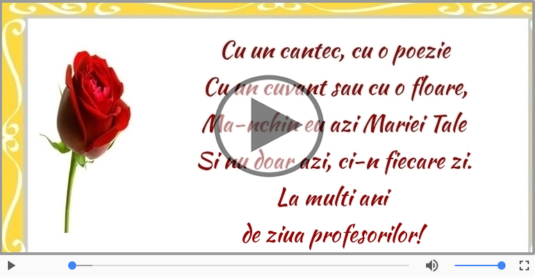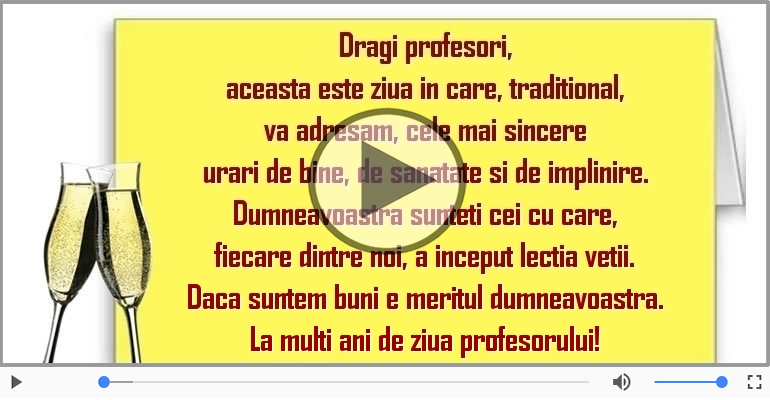 Descopera colectia noastra de felicitari muzicale de Ziua Profesorului, felicitari muzicale de Ziua Profesorului gratuite, felicitari muzicale de Ziua Profesorului pentru facebook, felicitari muzicale si animate de Ziua Profesorului pe youtube