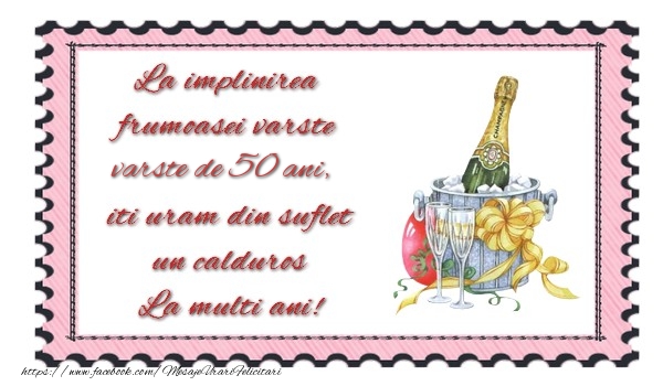 La 50 de ani, te afli la jumătatea secolului și la începutul unei noi etape pline de înțelepciune și satisfacții. Fiecare felicitare este un omagiu adus jumătății de secol de experiențe și un îndemn la a sărbători această aniversare cu bucurie și mândrie. La mulți ani pentru o viață plină de împliniri și noi începuturi!
