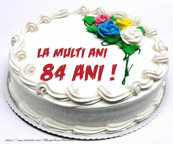Imaginea are dimensiunile 600px x 573px și textul 84 ani La multi ani! - Tort.