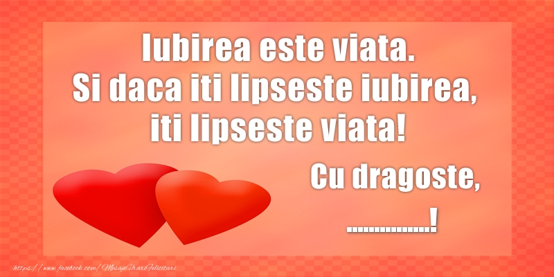 Iubirea este viata. Si daca iti lipseste iubirea, iti lipseste viata! Cu dragoste, ...!