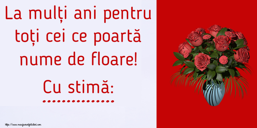 La mulți ani pentru toți cei ce poartă nume de floare! Cu stimă: ...