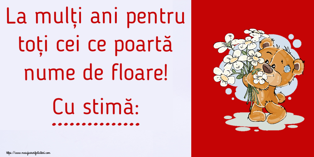 La mulți ani pentru toți cei ce poartă nume de floare! Cu stimă: ...
