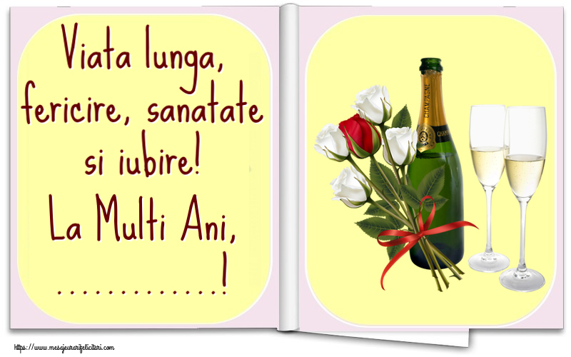 Viata lunga, fericire, sanatate si iubire! La Multi Ani, ...! ~ 4 trandafiri albi și unul roșu