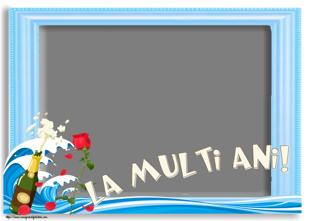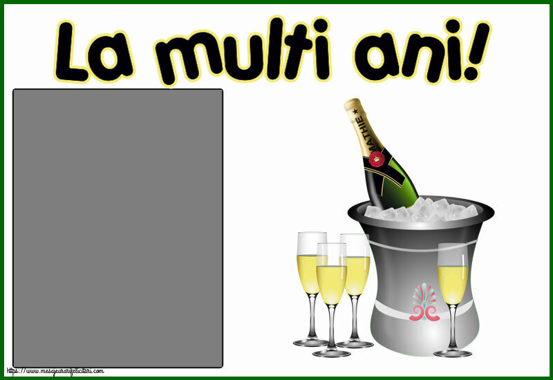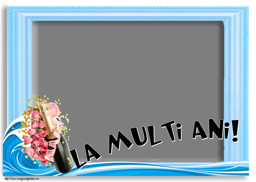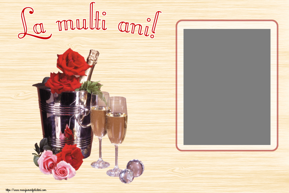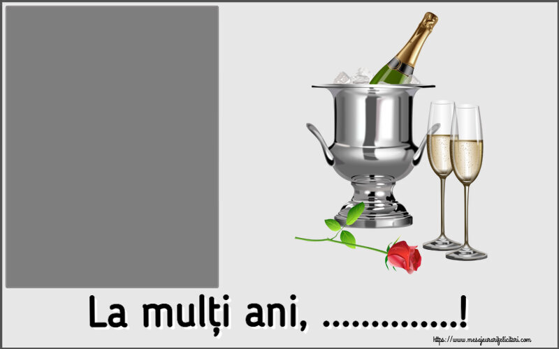 La mulți ani, ...! - Rama foto ~ șampanie în frapieră și trandafir