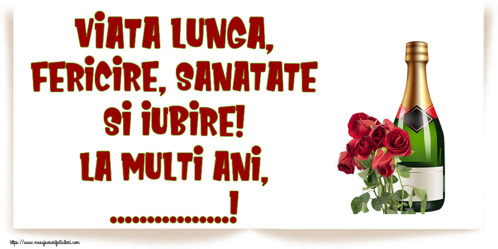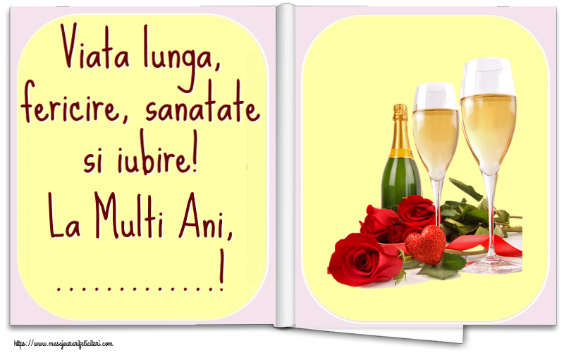 Viata lunga, fericire, sanatate si iubire! La Multi Ani, ...! ~ trandafiri și șampanie