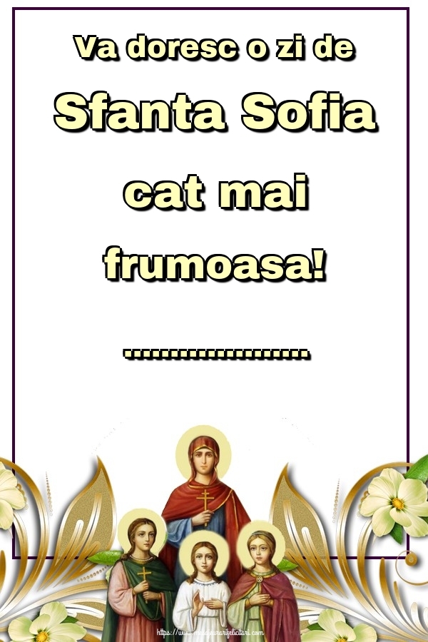 Va doresc o zi de Sfanta Sofia cat mai frumoasa! ...