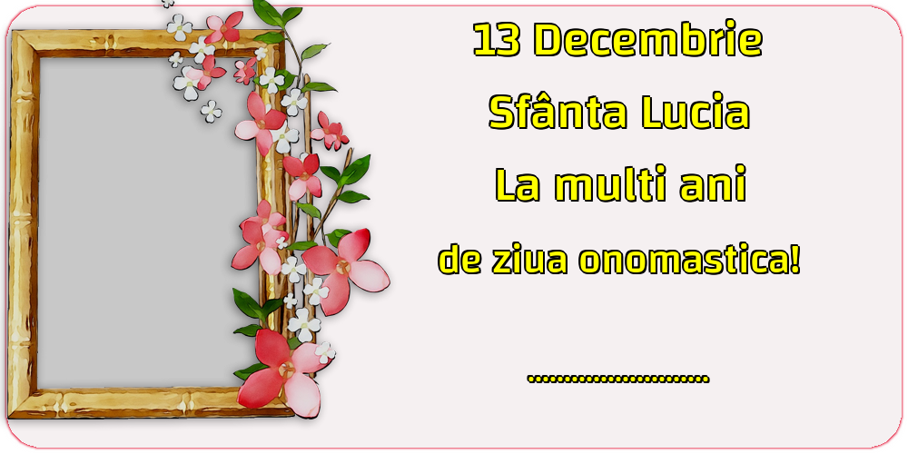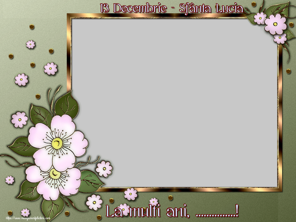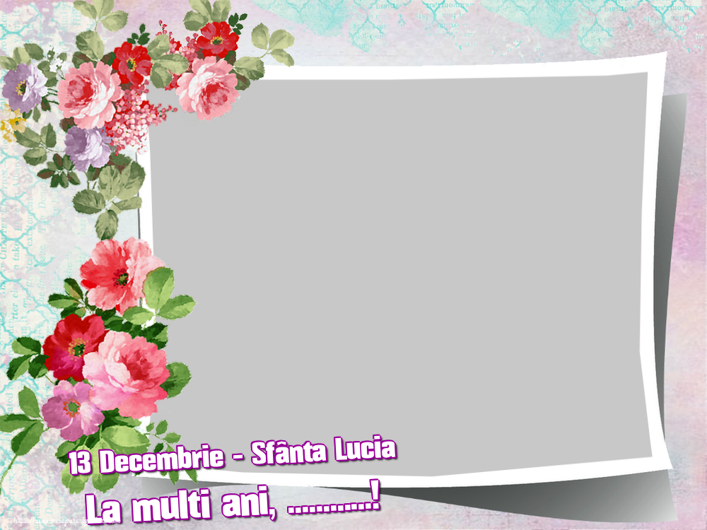 13 Decembrie - Sfânta Lucia La multi ani, ...! - Rama foto pe fundal cu flori