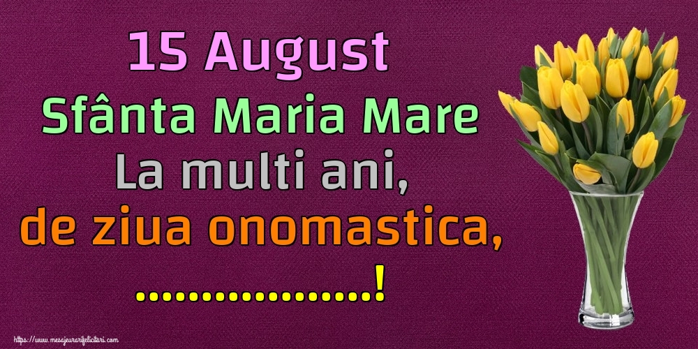 Felicitari de Sfanta Maria cu lalele - Felicitari cu lalele de Sfanta Maria pe care le poti personaliza cu numele, textul sau pozele tale