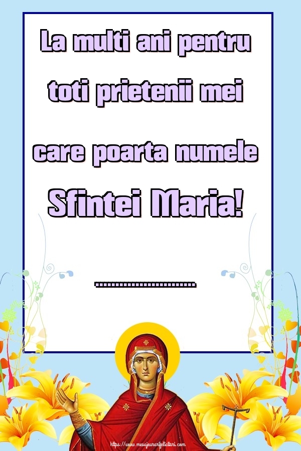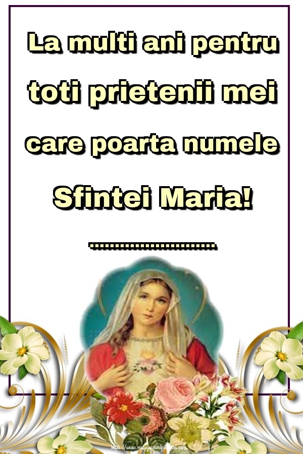 La multi ani pentru toti prietenii mei care poarta numele Sfintei Maria! ...