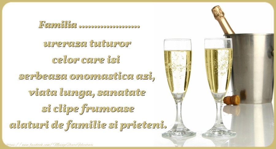 Familia ... ureraza tuturor celor care isi serbeaza onomastica azi, viata lunga, sanatate si clipe frumoase alaturi de familie si prieteni.
