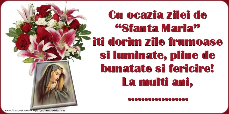 Urare de la multi ani de Sfanta Maria pentru ...