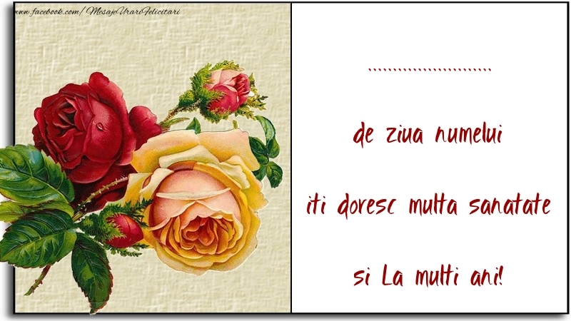 de ziua numelui iti doresc multa sanatate si La multi ani! ...