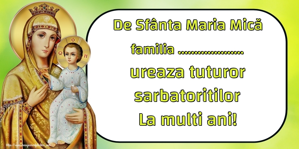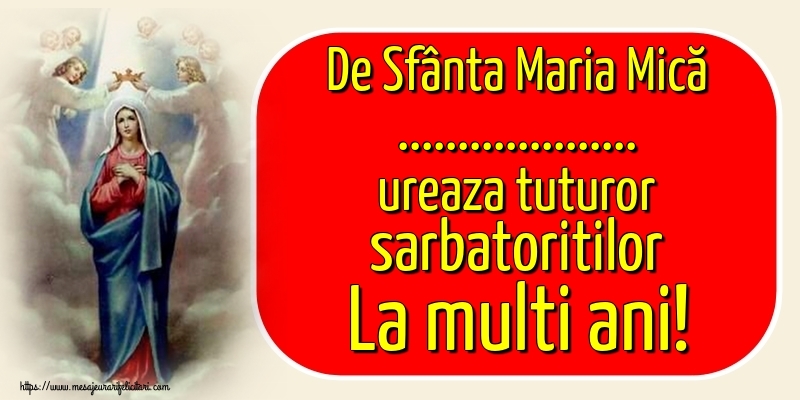 De Sfânta Maria Mică ... ureaza tuturor sarbatoritilor La multi ani!