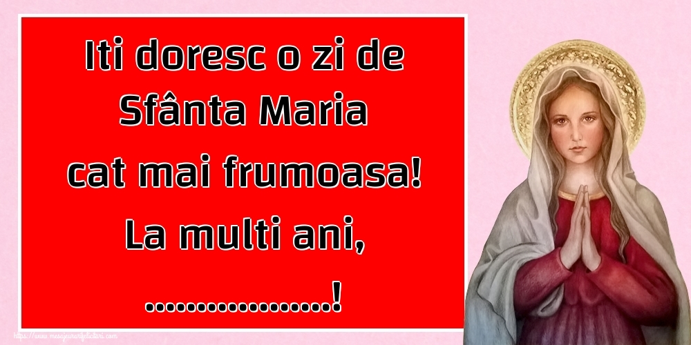 Iti doresc o zi de Sfânta Maria cat mai frumoasa! La multi ani, ...!