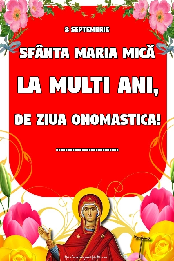 8 septembrie Sfânta Maria Mică La multi ani, de ziua onomastica, ...! - Rama foto