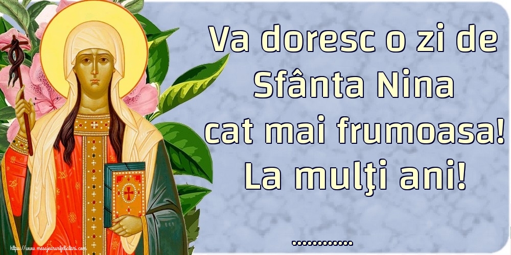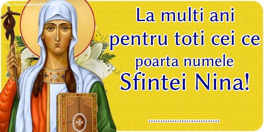Pentru toți cei care poartă numele Sfintei Nina Un sincer La mulţi ani! ...