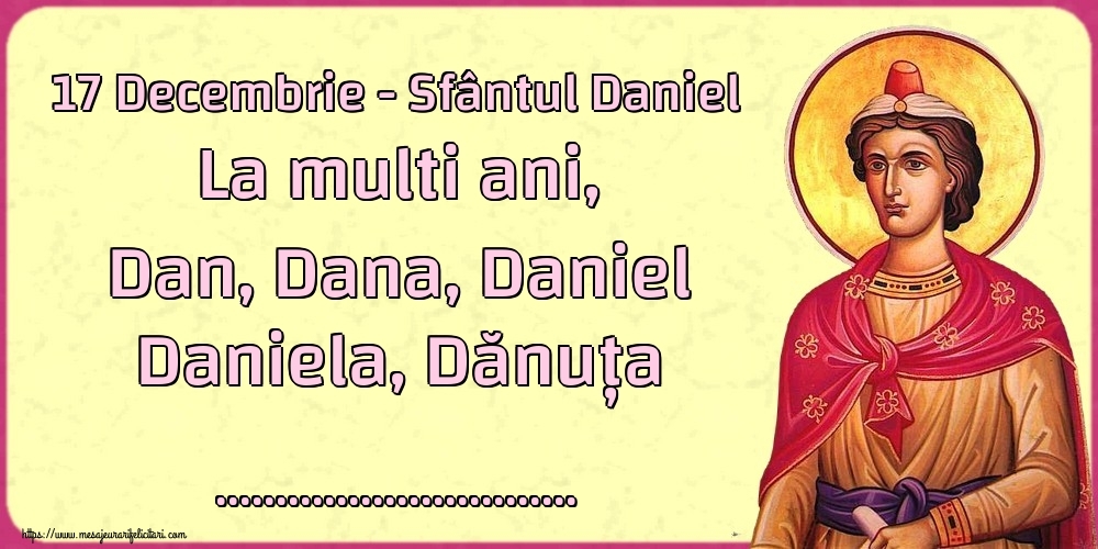 17 Decembrie - Sfântul Daniel La multi ani, Dan, Dana, Daniel Daniela, Dănuța ...!