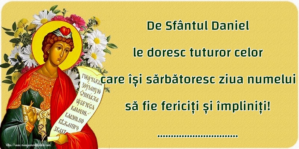De Sfântul Daniel le doresc tuturor celor care își sărbătoresc ziua numelui să fie fericiți și împliniți! ...!