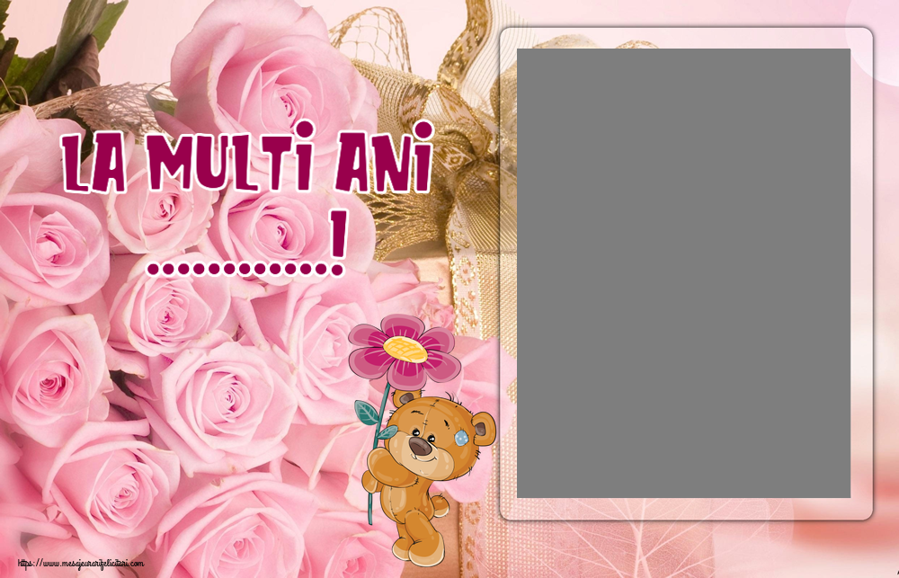 La multi ani ...! - Rama foto ~ Teddy cu o floare