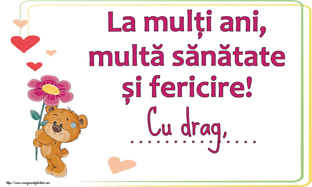 La mulți ani, multă sănătate și fericire! Cu drag, ... ~ Teddy cu o floare