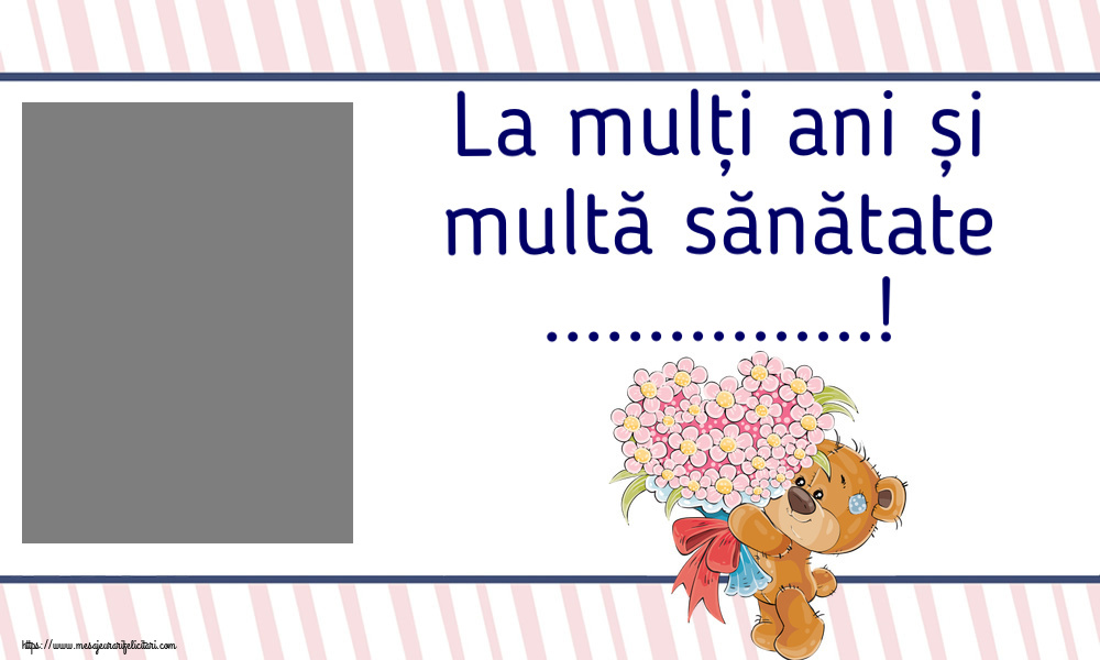 La mulți ani și multă sănătate ...! - Rama foto ~ Teddy cu un buchet de flori