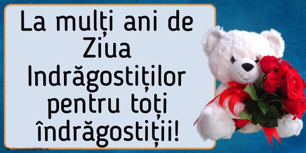 Happy Valentine's Day! Trimite si tu o felicitare de Ziua indragostitilor/Valentines day pentru iubit,iubita, sot, sotie, prieten, prietena sau pentru alte persoane dragi tie! Click pentru a alege felicitarea potrivita!