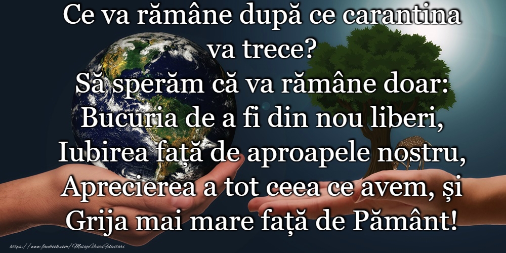 Pentru binele vostru și al celor dragi vouă, acceptați carantina și toate măsurile care se impun într-o situație de criză.