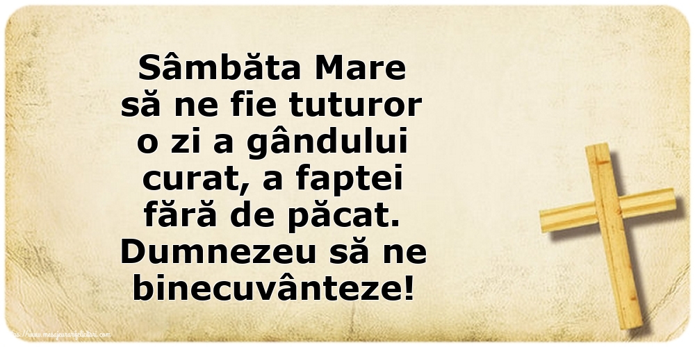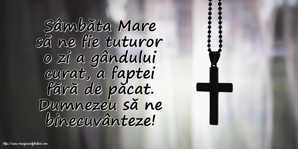 Sâmbăta Mare să ne fie tuturor o zi a gândului curat, a faptei fără de păcat. Dumnezeu să ne binecuvânteze!