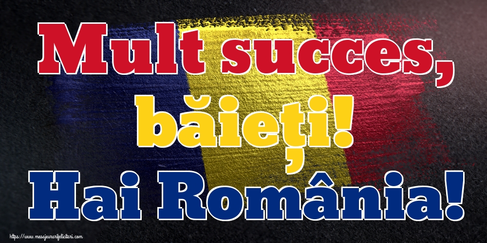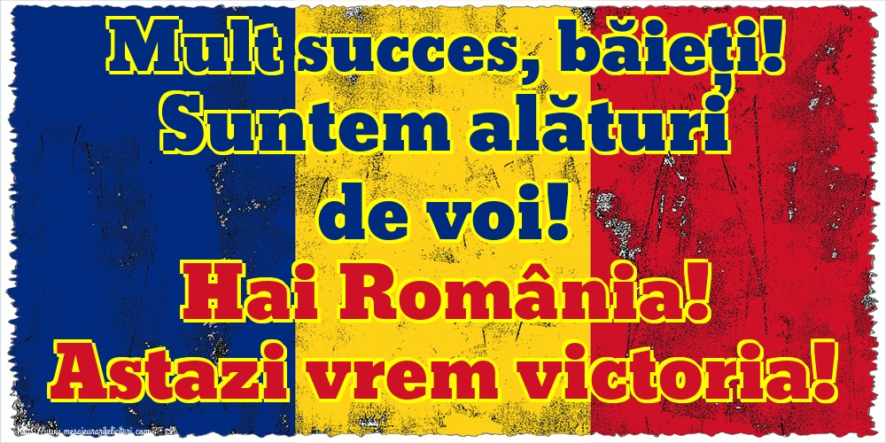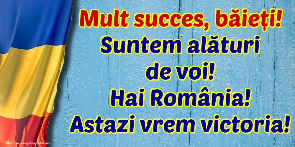 Mult succes, băieți! Suntem alături de voi! Hai România! Astazi vrem victoria!