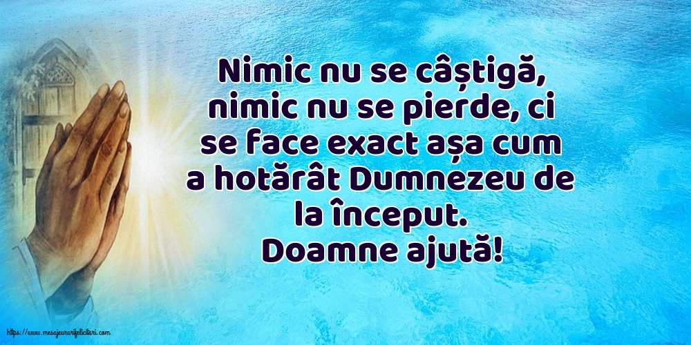 Doamne ajută! Nimic nu se câștigă, nimic nu se pierde...