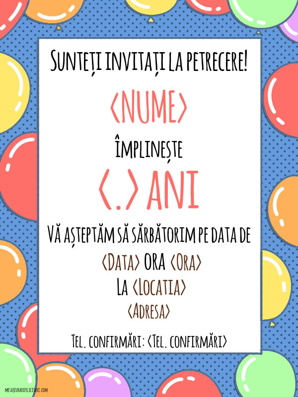 Completează câmpurile din formularul de mai jos cu informațiile evenimentului tău, apasă butonul `Creează invitația` și invitația va fi gata tine.