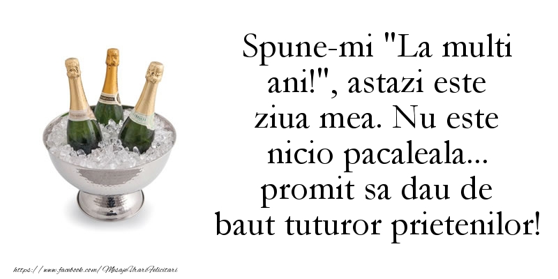 Spune-mi "La multi ani!", astazi este ziua mea. Nu este nicio pacaleala... promit sa dau de baut tuturor prietenilor!