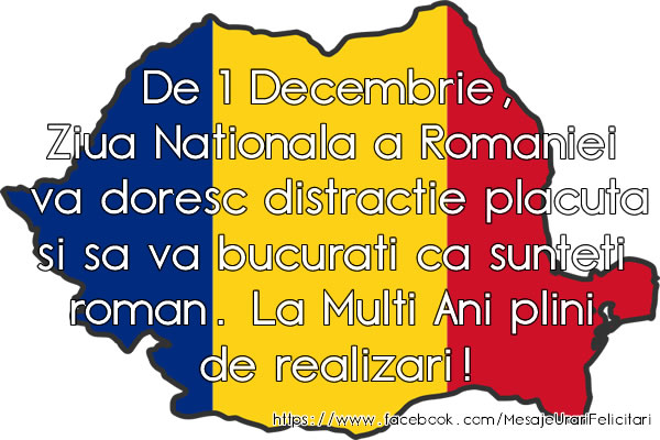 De 1 Decembrie, Ziua Nationala a Romaniei va doresc distractie placuta si sa va bucurati ca sunteti roman. La Multi Ani plini de realizari!