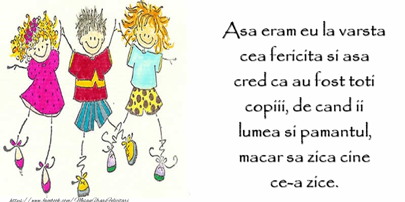 Asa eram eu la varsta cea fericita si asa cred ca au fost toti copiii, de cand ii lumea si pamantul, macar sa zica cine ce-a zice.