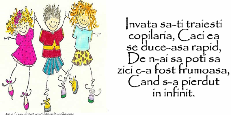 Invata sa-ti traiesti copilaria, caci ea se duce-asa rapid, de n-ai sa poti sa zici c-a fost frumoasa, cand s-a pierdut in infinit.