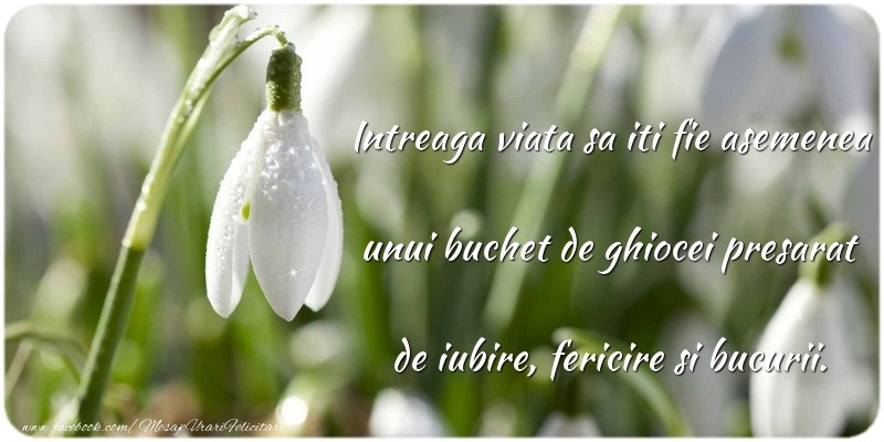 Intreaga viata sa iti fie asemenea unui buchet de ghiocei presarat de iubire, fericire si bucurii. Pentru tine - ghiocelul vietii mele, alaturi de tine, intreaga mea viata este o adevarata primavara.