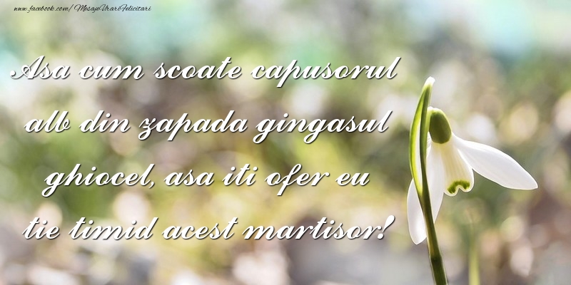 Asa cum scoate capusorul alb din zapada gingasul ghiocel, asa iti ofer eu tie timid acest martisor!